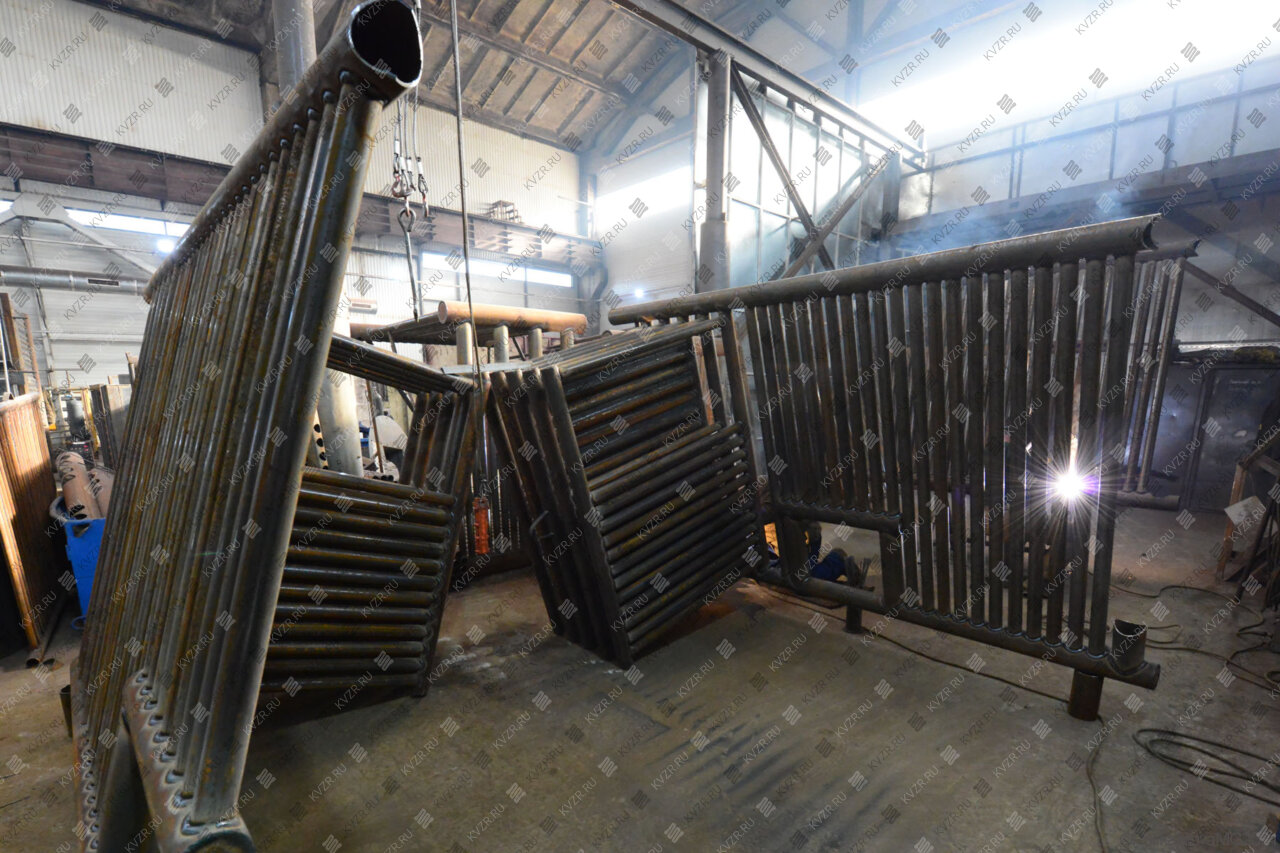 Все водогрейные котлы 1 4 МВт нашего производства - стальные, горизонтальные, водотрубные, прямоточные и компактные. Трубная часть котельного блока выполняется из труб различных диаметров, материал труб сталь 10 и 20. Блок снаружи обваривается стальной охлаждаемой полосой, поэтому в наших котлах исключена возможность задымления котельного зала. Снаружи на каркас из профильной трубы и швеллера крепится утеплитель и декоративная обшивка из полимерного листа. В обшивке предусмотрены лючки для очистки поверхностей нагрева.